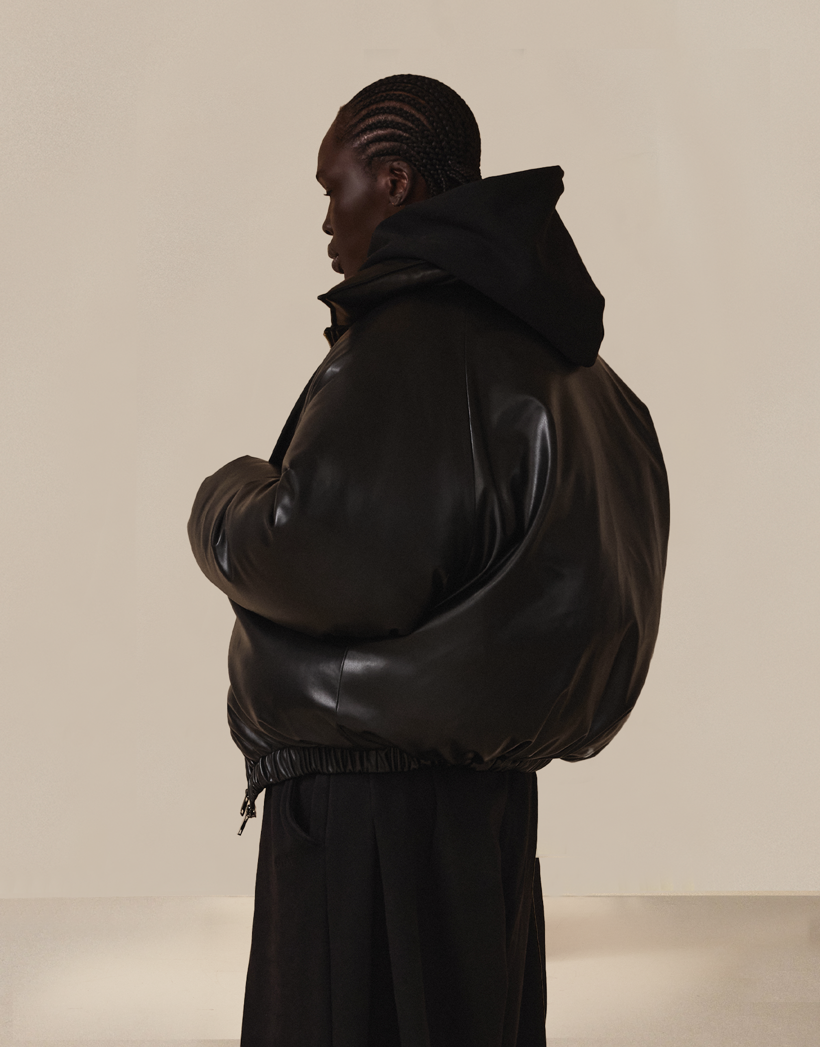 Wrap yourself in the quiet confidence of the Flock Bomber in Black—a seamless fusion of form, function, and refined minimalism. Crafted from high-quality vegan leather, this puffy bomber is designed to embody strength and softness in equal measure.