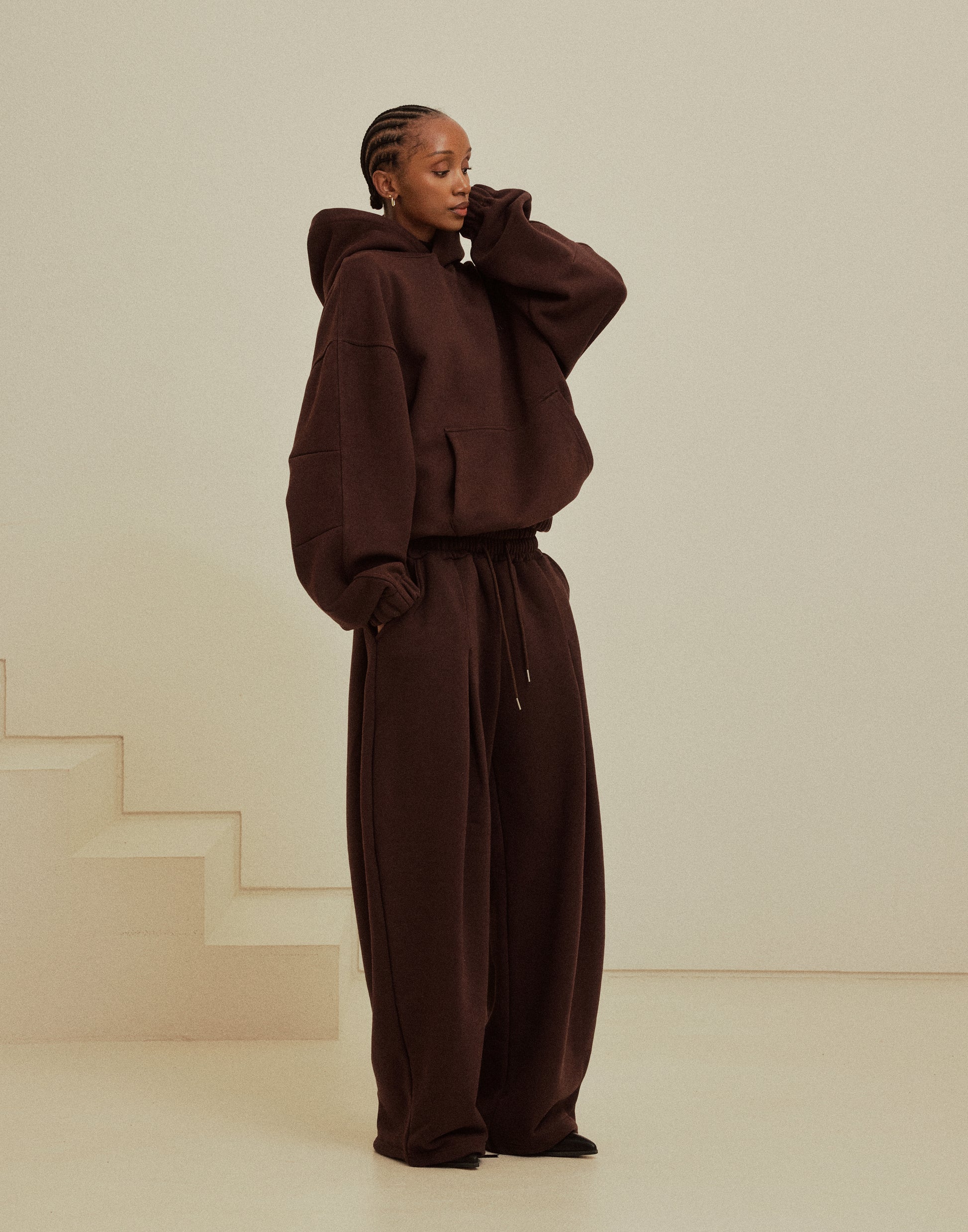 The rich espresso colour brings warmth and sophistication, while the relaxed fit ensures effortless movement and all-day comfort. Thoughtful details, from the clean lines to the minimalist design, reflect Ola’s dedication to quality and simplicity.